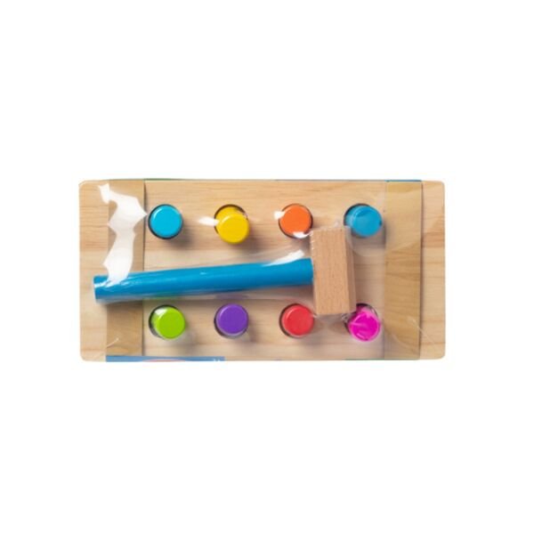 Rengarenk tasarımıyla klasik çivi çakma oyunu! Bir çiviyi çak, diğeri yukarı çıksın, çok ama çok eğlenceli! Ahşap tezgahtan çıkarılamayan 8 adet ahşap çivi (çubuk) ve ahşap çekiçten oluşur. El-göz koordinasyonunu, kasların güçlenmesini, ve renk tanıma becerisini destekler. Avrupa Birliği ve ABD oyuncak güvenlik standartlarına uygundur. Önerilen Yaş: 2+