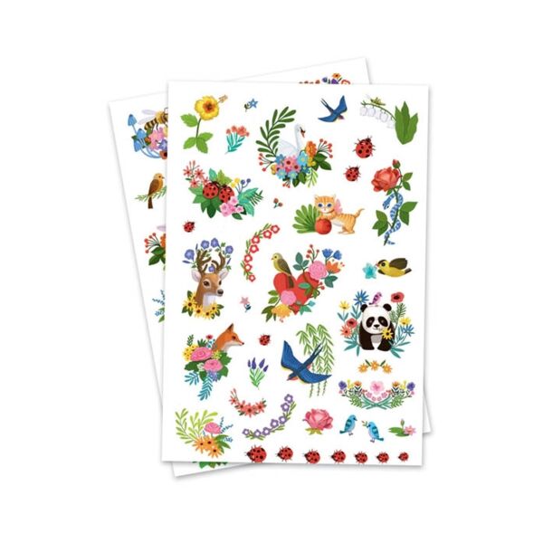 İlkbahar hayvan temalı geçici dövmeler. Dermatolojik olarak test edilmiş 2 farklı dövme sayfası (14 x 21cm) içerir. Hualing Xu tarafından tasarlandı