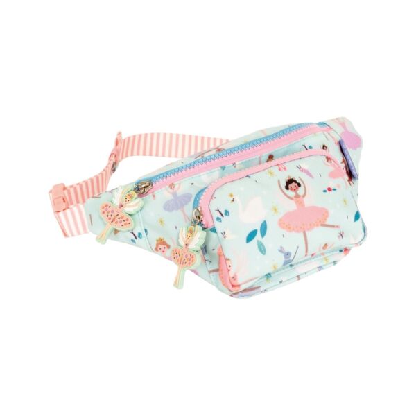 Ballerina Enchanted tasarımında balerin şeklinde fermuarlar, iki bölme ve çizgili malzemeden ayarlanabilir bir askı bulunur.
