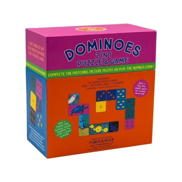 Yapboz ve Oyunun bir arada olduğu 2’si 1 arada Deep Sea, tek veya çift kişi olarak oynanabilir. Birbirleriyle eşleşen resimli bulmacayı tamamlayın veya sayı oyununu oynayın! Sağlam kutusunun içinden yeniden kullanılabilen ve üzerlerinde muhteşem deniz altı figürleri olan 28 adet çift taraflı kart çıkmaktadır. Kartların resimli taraflarını kullanarak birleştirip, şekilleri tamamlayabilirsiniz. Dalgıçları, ahtapotları, köpekbalıklarını, kaplumbağaları ve çok daha fazlasını gösteren dev bir yapboz yapın. Sonrasında, domino numaralarını ortaya çıkarmak için kartları ters çevirin ve bir arkadaşınızla klasik domino oyununu oynayın! Oyun süresi bittiğinde, tüm kartlarınızı kutuya düzgünce koyun ve bir sonraki oyun için kapağı tekrar açın!