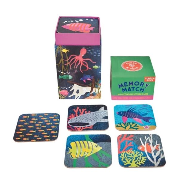 Floss & Rock Hafıza ve eşleştirme oyunumuzla harika vakitler geçireceksiniz! Yeniden kullanılabilir harika bir kutuda gelen oyun 36 göz alıcı karta sahiptir. Floss & Rock Deep Sea tasarımlı kartlar balıklar, köpek balıkları, dalgıçlar ve daha fazlasının görsellerini içerir. Parlak folyo kaplaması ve birbirinden güzel desenleriyle 18 eşleşen hafıza kartı güzel bir hediye olarak da düşünebilirsiniz. İster tüm kartları yüzleri kapalı şekilde zemine dizerek sırayla ikişer olarak açarak eşleştirebilir isterseniz de kartları oyuncular arasında dağıtarak sırasıyla açarak benzer olanları eşleştirip puan kazanabilirsiniz. Özellikleri Bilişsel becerileri, el/göz koordinasyonu ve hafızayı geliştirir. Dışarıda oynamak için mükemmeldir. Tek başına veya arkadaşlarla oynanabilir. 18 çift eşleşen resimli karttan oluşur. 2+ yaş için önerilir. Kutu ölçüsü: 8 x 8 x 16.2 cm Kart ölçüsü: 7 x 7