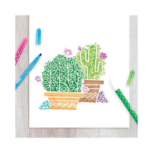 O yeşil tek boynuzlu atı aslında pembe mi yapmak istiyordun? O zaman silebilirsin! Bu silinebilir işaretleyicilerle hatalarınızı anında düzeltebilirsiniz.